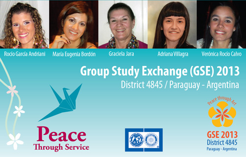 Las integrantes del grupo IGE del Distrito 4845 Paraguay-Argentina son: Graciela Jara, docente de arte del Instituto de Bellas Artes de la Universidad del Este de Ciudad del Este, miembro del Rotary Club de Ciudad del Este; María Eugenia Bordón, profesora de lengua portuguesa, patrocinada por el Rotary Club Resistencia Sur; Rocío García Andriani, profesora de danzas, patrocinada por el Rotary Club Resistencia Oeste; Verónica Rocío Calvo, cantante y profesora de música, patrocinada por el Rotary Club de Corrientes y Adriana Villagra, artista plástica, patrocinada por el Rotary Club Asunción Villa Morra. Las integrantes del equipo fueron seleccionadas en base a su trayectoria profesional a través de una convocatoria que se realizó en octubre del 2012.