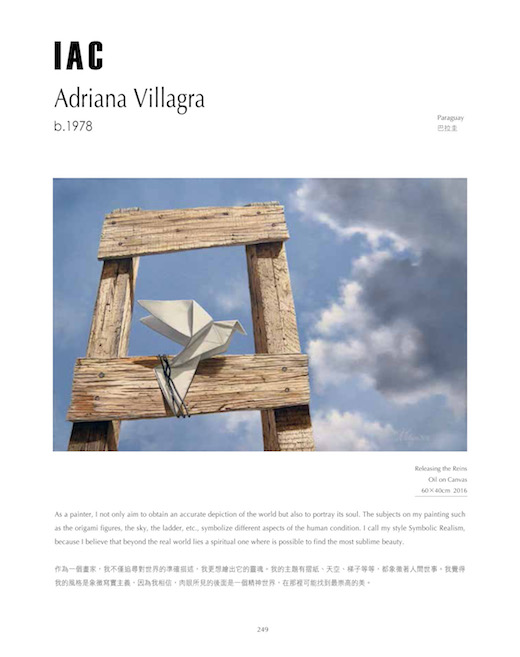 La artista visual Adriana Villagra ha sido galardonada con el “Gallery Award” en la International Artist Grand Prize Competition (I.A.G.P.C.) organizada por la Taiwan International Contemporary Artist Association en conjunto con la feria Art Revolution Taipei (A.R.T.). Este galardón la coloca entre los veinte mejores artistas del mundo.