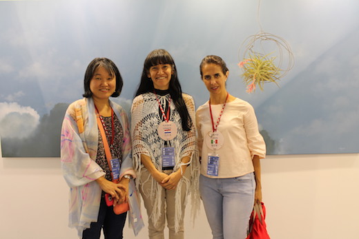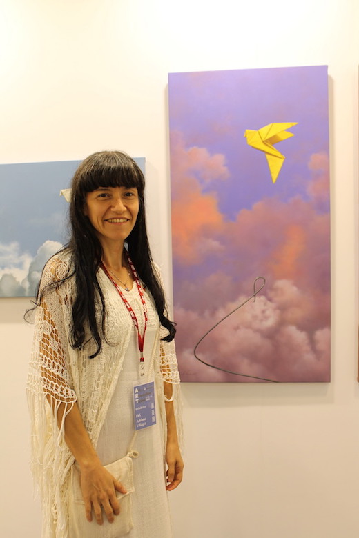 | En compañía de Yuki y la artista mexicana Victoria Rueda, también expositora en el sector del International Artist Salon (IAS). |